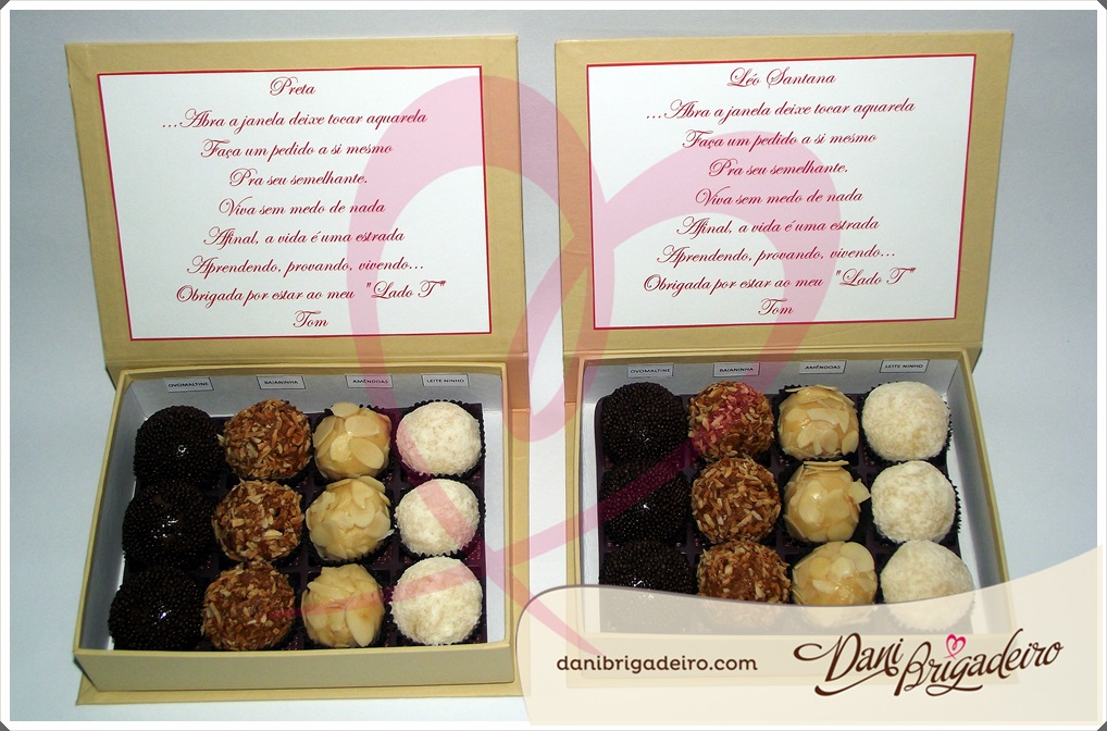 Para o paladar brasileiro, o brigadeiro gourmet em casamentos, continua sendo o doce preferido. Pode ter outras variações como caixinhas recheadas com brigadeiro, brigadeiro caramelado, brigadeiro coberto com chocolate e a sensação do momento, brigadeiro com chocolate belga.